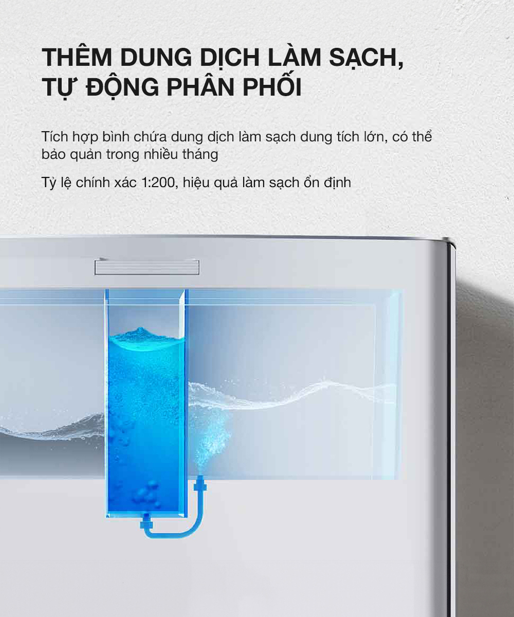 Bộ cấp nước FM2243 cho robot Deebot X2 Omni được tích hợp thêm bình chứa dung dịch làm sạch robot hút bụi có dung tích lớn cùng khả năng tự động lấy dung dịch theo tỷ lệ 1:200 một cách chính xác.