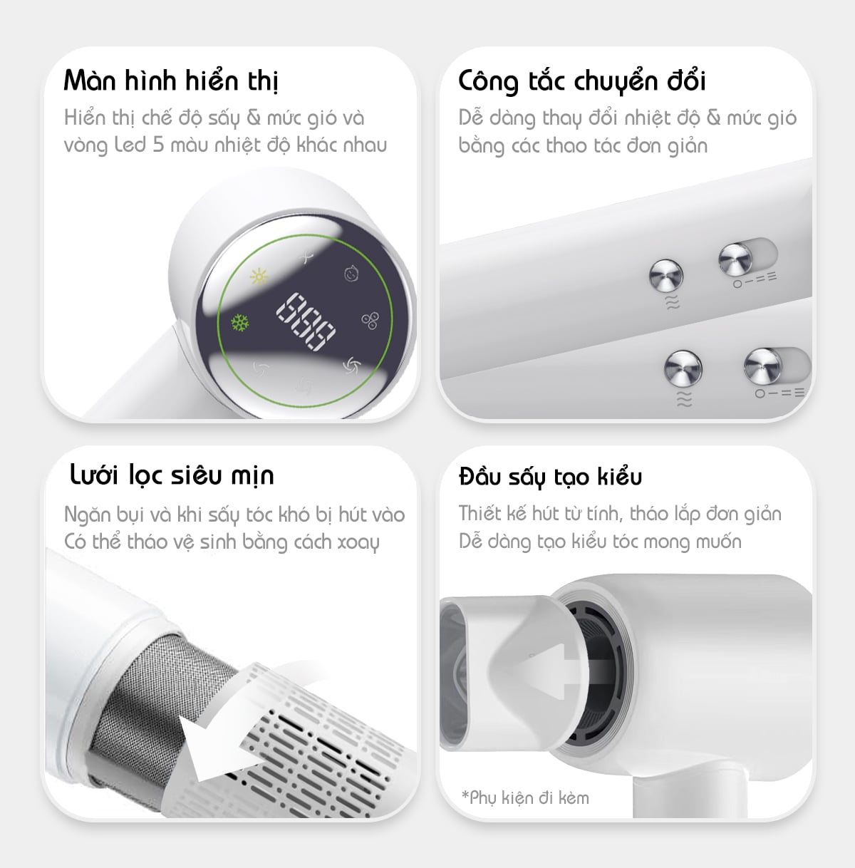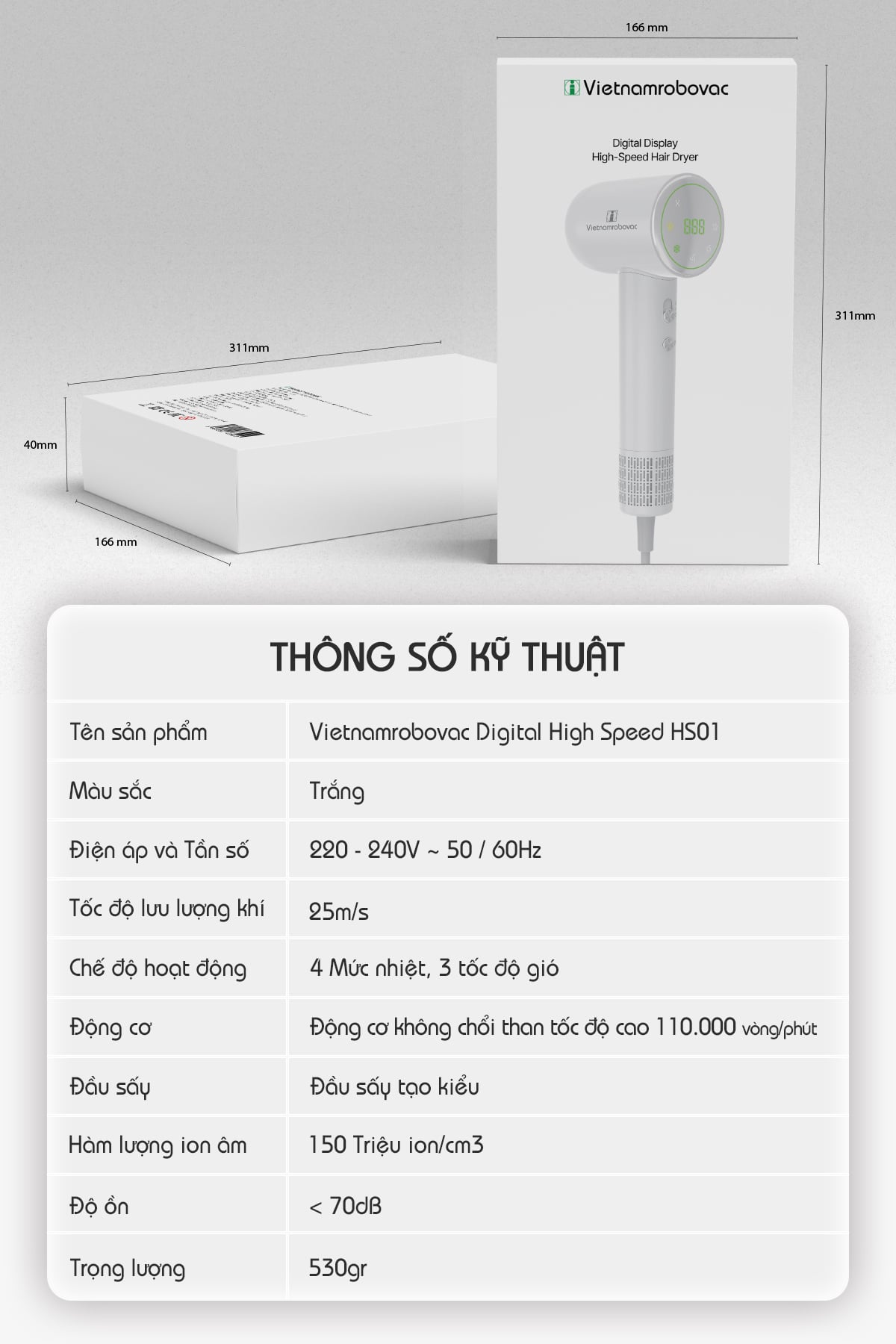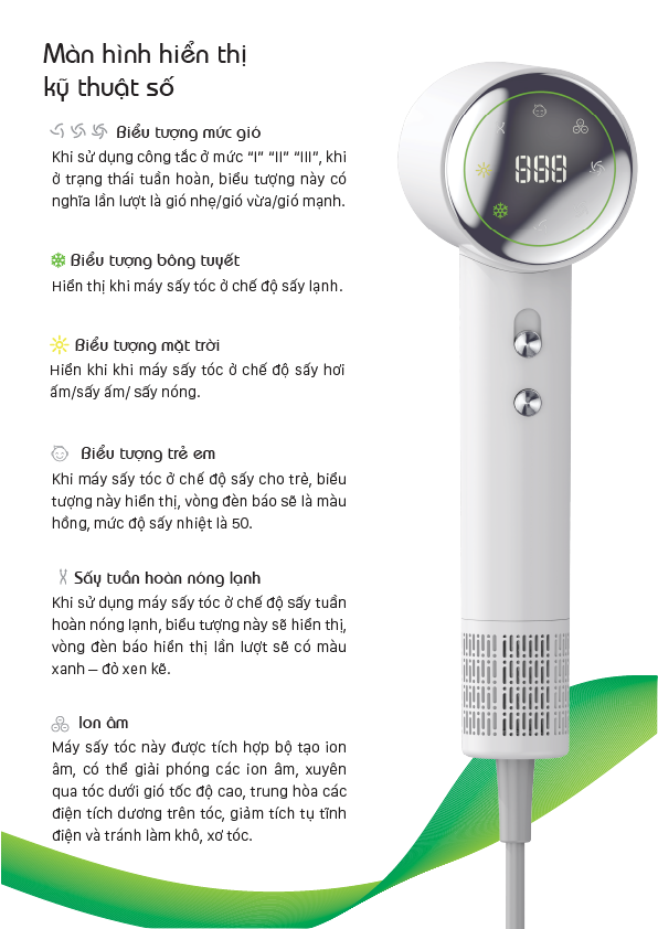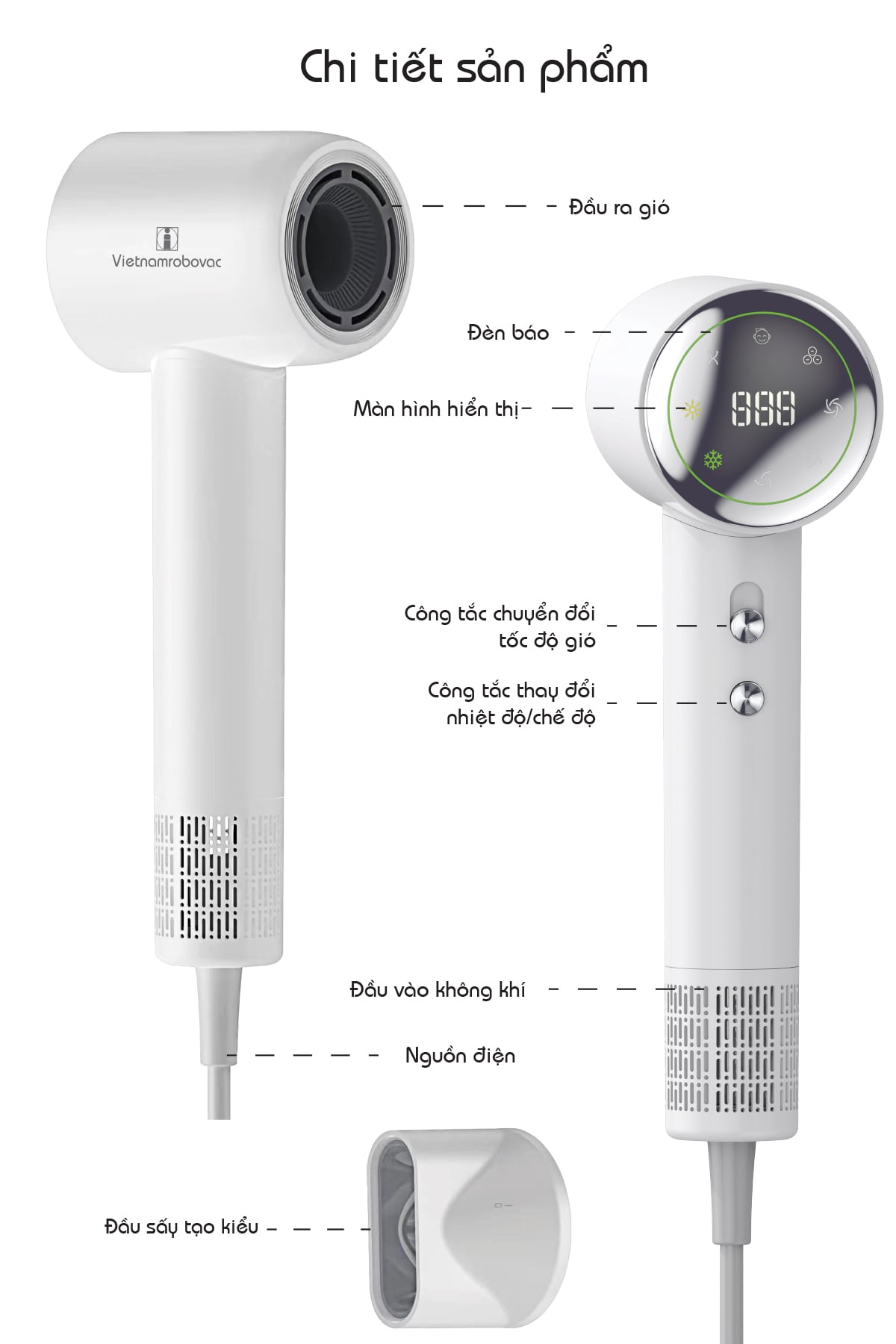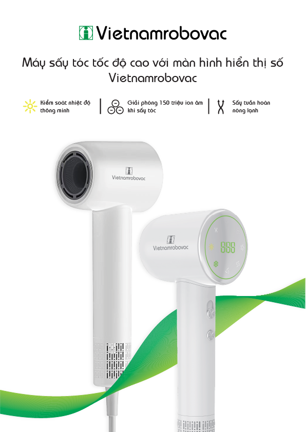 • Tên sản phẩm: Máy sấy tóc tốc độ cao với màn hình hiển thị số Vietnamrobovac