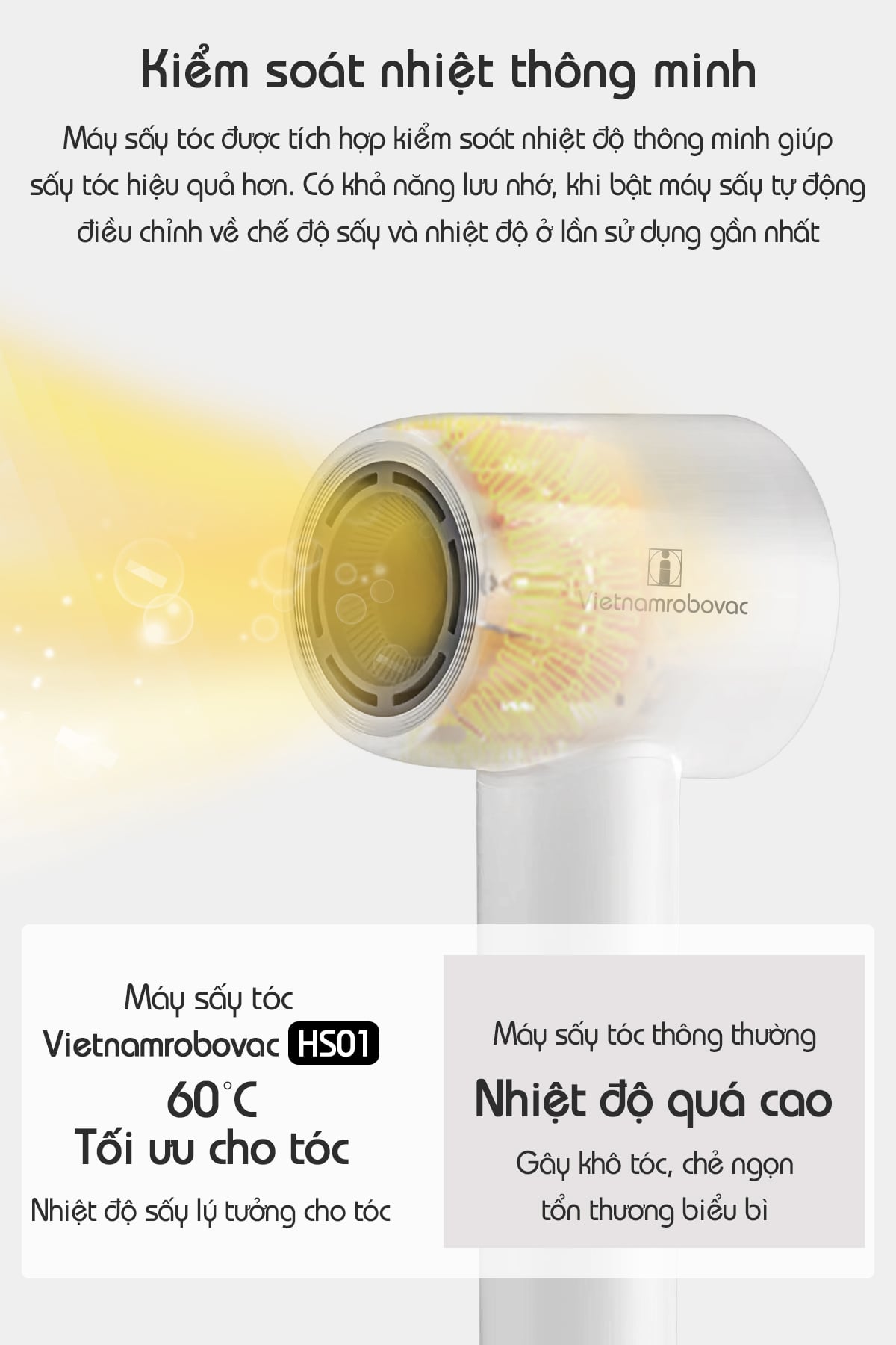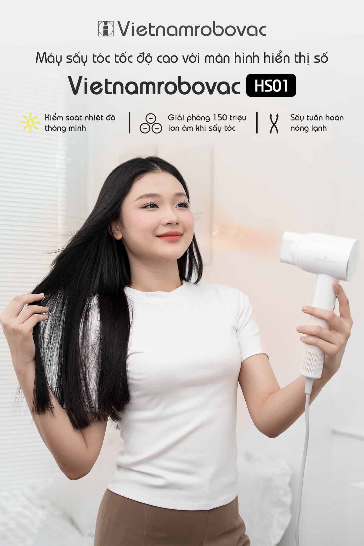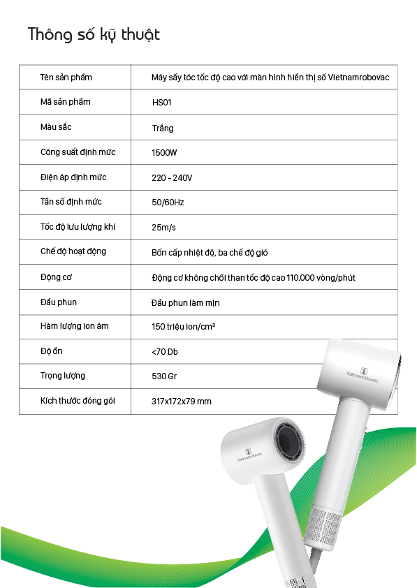 MÁY SẤY TÓC VIETNAMROBOVAC DIGITAL HIGH - SPEED HS01- BH 12 THÁNG