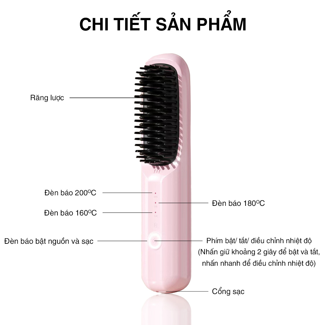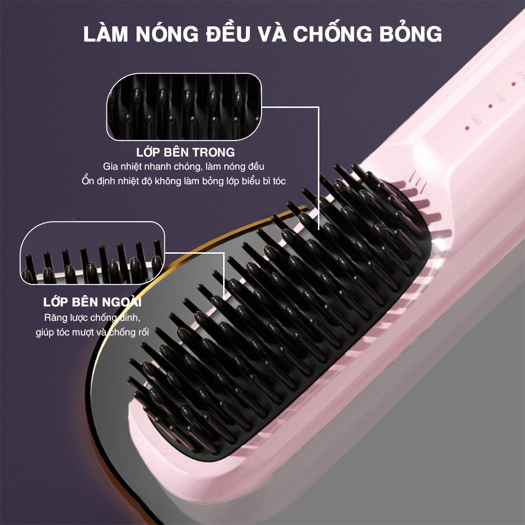 - Răng lược được làm nóng bằng gốm ceramic, ít gây hư tổn và không làm bết tóc.