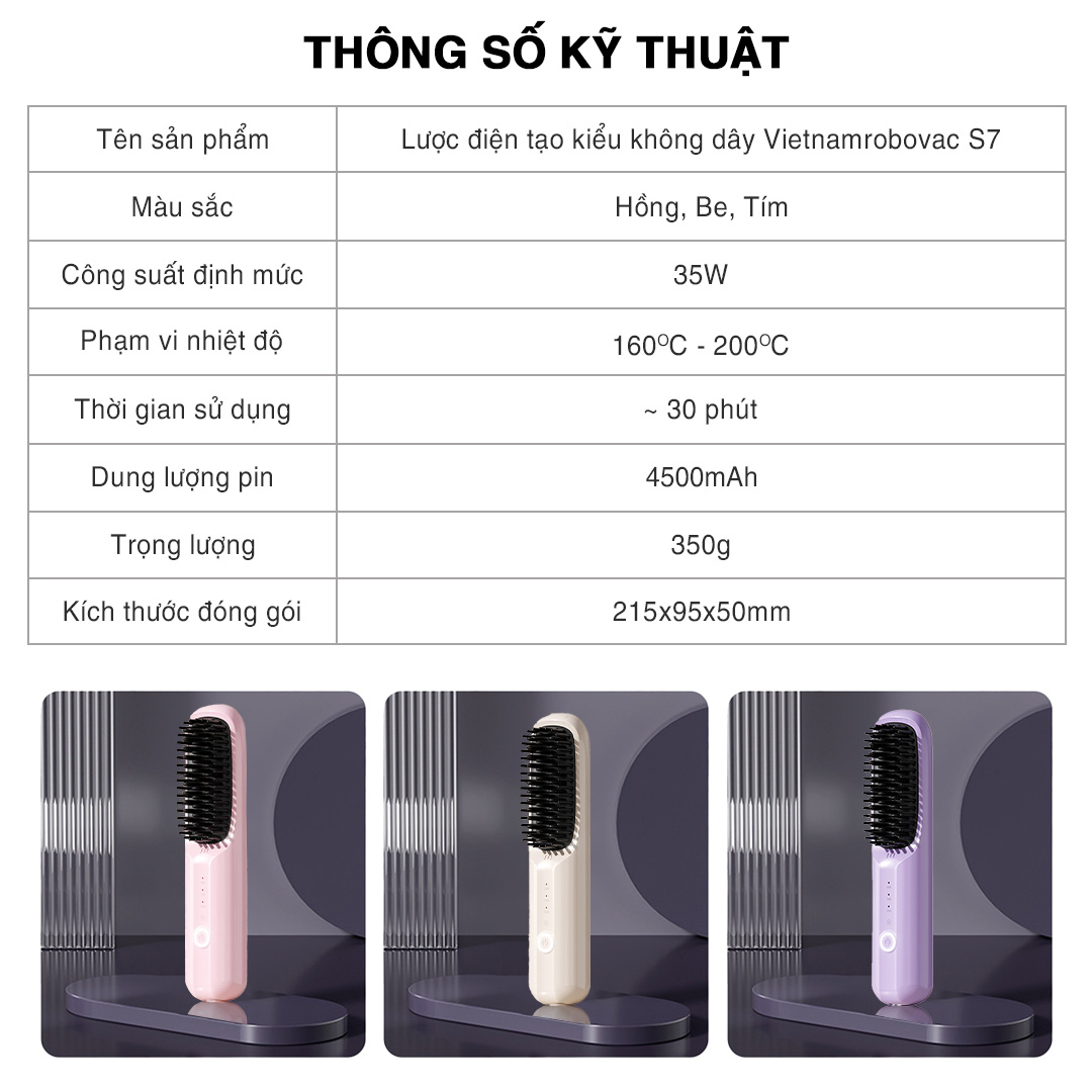 - Tên sản phẩm: Lược điện không dây S7 Vietnamrobovac