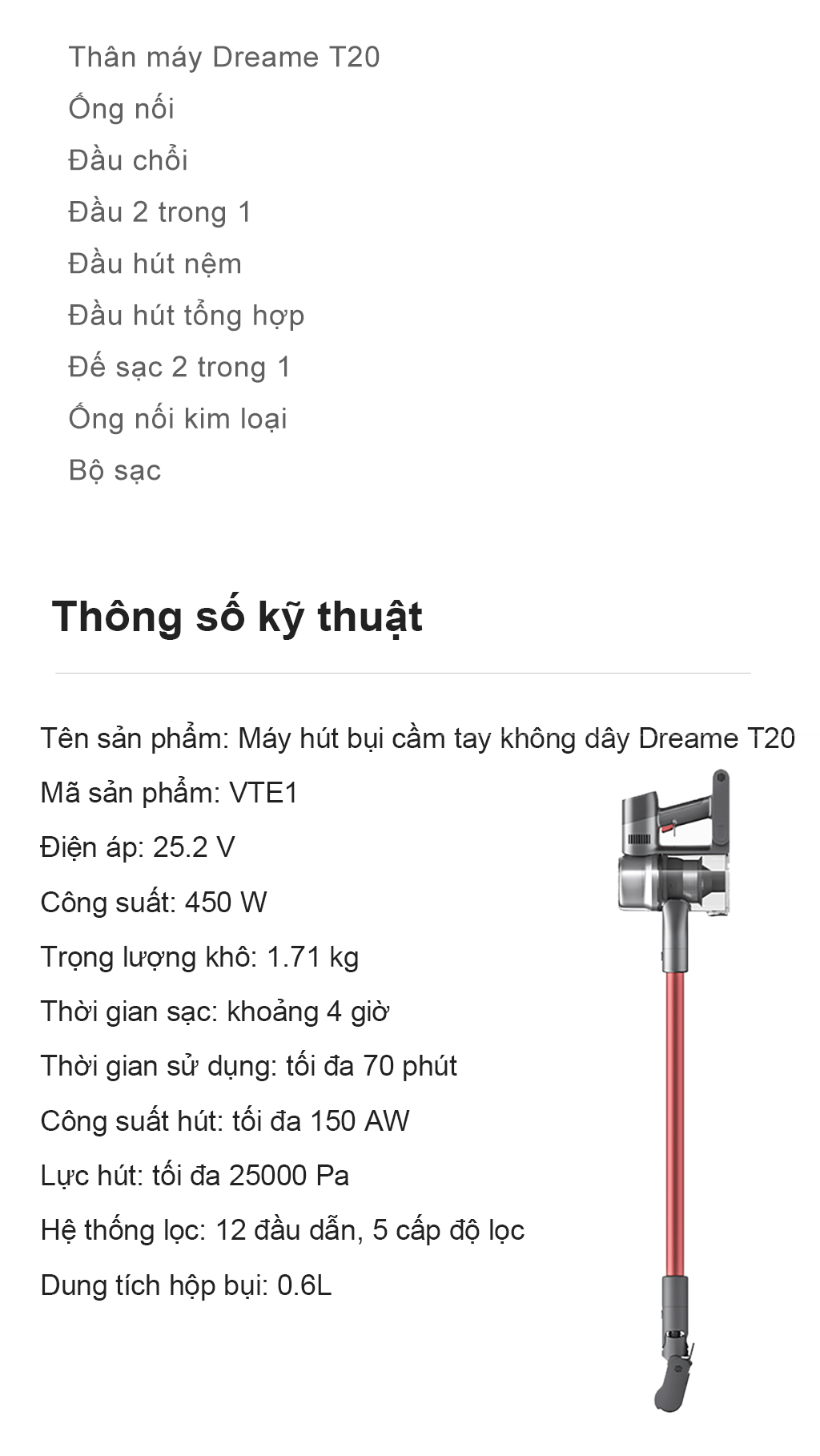 Dreame T20 là thiết bị có khả năng hút sạch mọi bụi bẩn, thiết kế công thái học thông minh, giảm tiếng ồn và êm ái. Thế hệ T20 mới hứa hẹn sẽ mang đến những giá trị sử dụng tốt nhất cho người dùng Việt Nam.