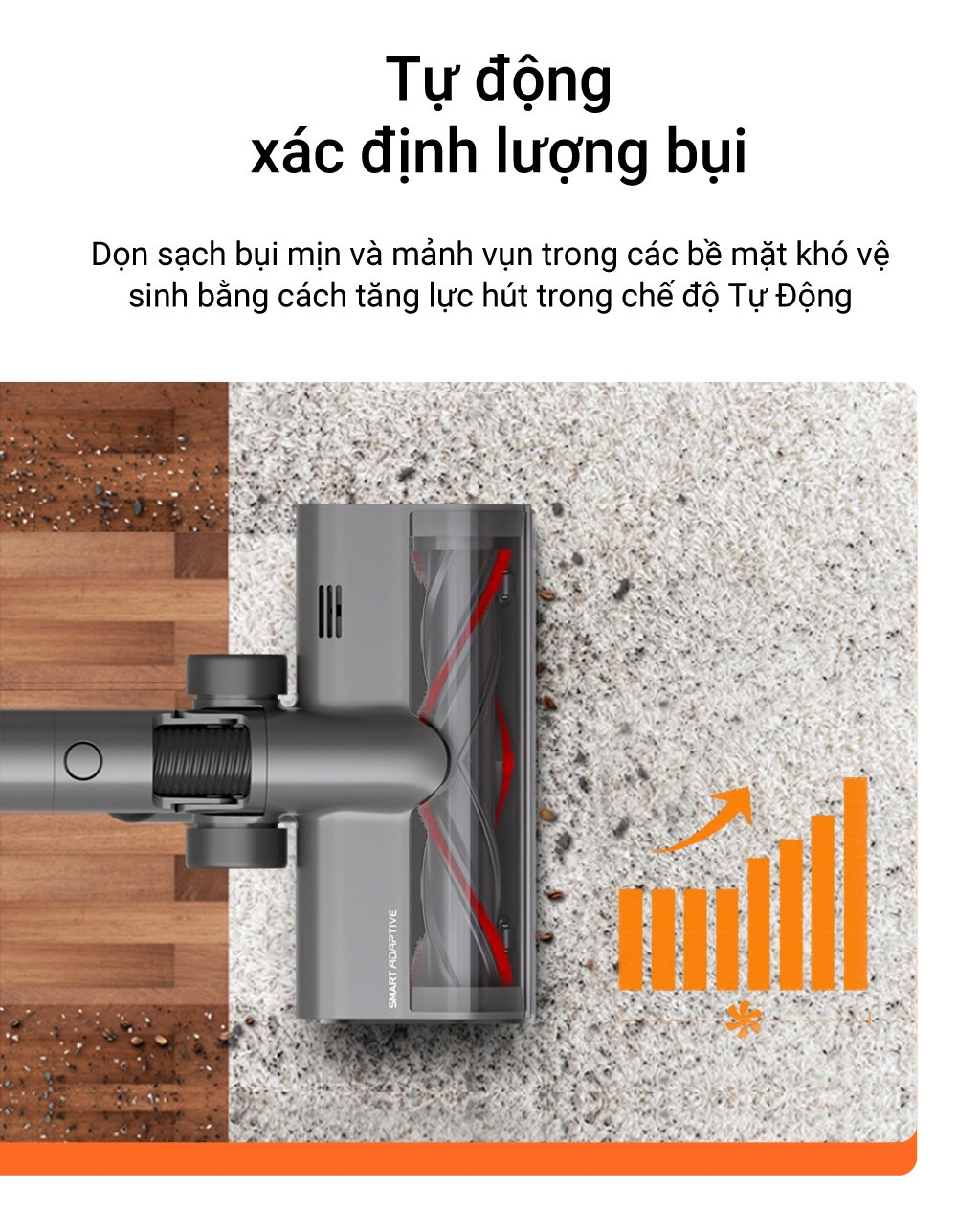 Công nghệ Speed Force trên khối động cơ SPACE 5.0 độc quyền từ Dreame tạo lục hút đo được tại đầu vòi của thiết bị lên đến 27000 Pa, công suất hút đạt 190 AW.