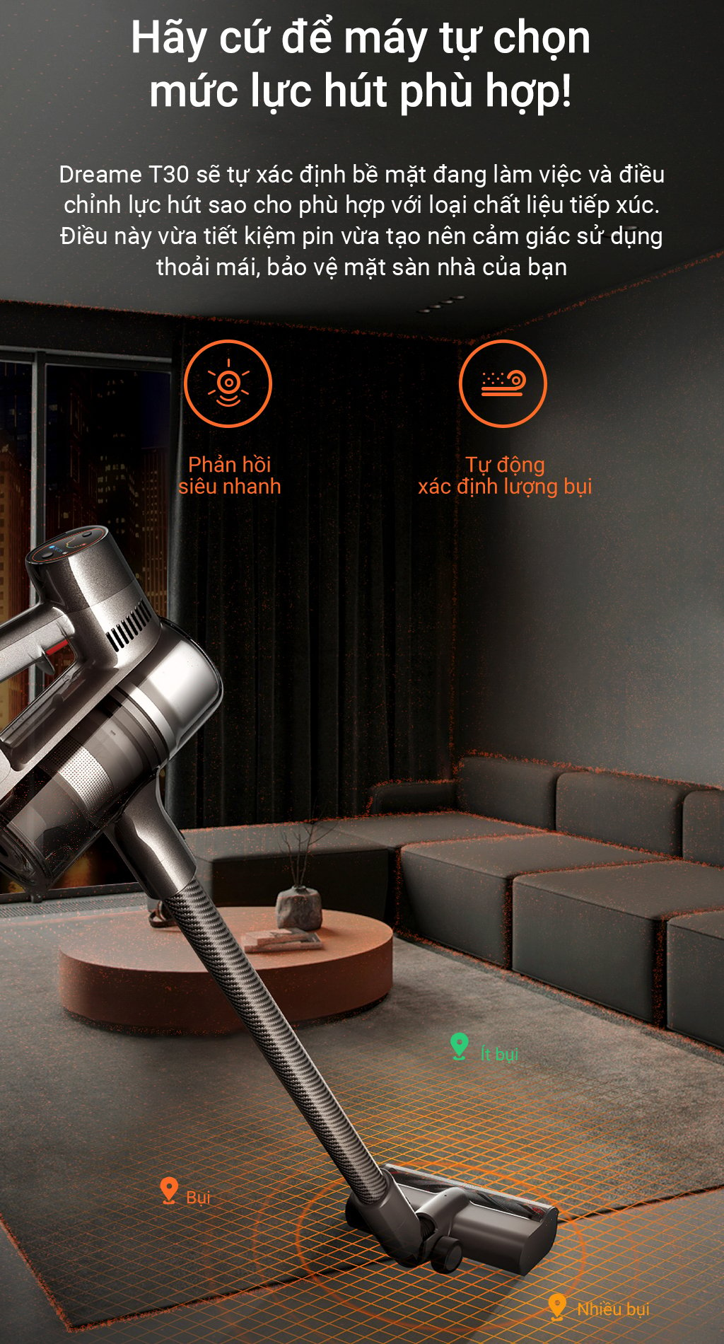 Dreame T30 là thiết bị có khả năng hút sạch mọi bụi bẩn, thiết kế công thái học thông minh, giảm tiếng ồn và êm ái. Thế hệ T30 mới hứa hẹn sẽ mang đến những giá trị sử dụng tốt nhất cho người dùng Việt Nam.