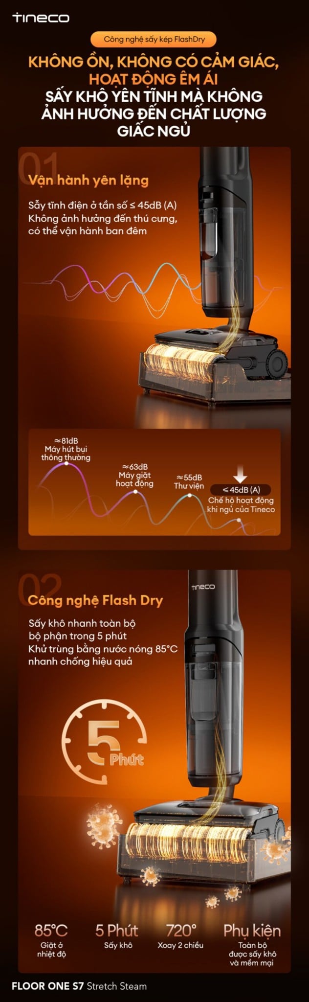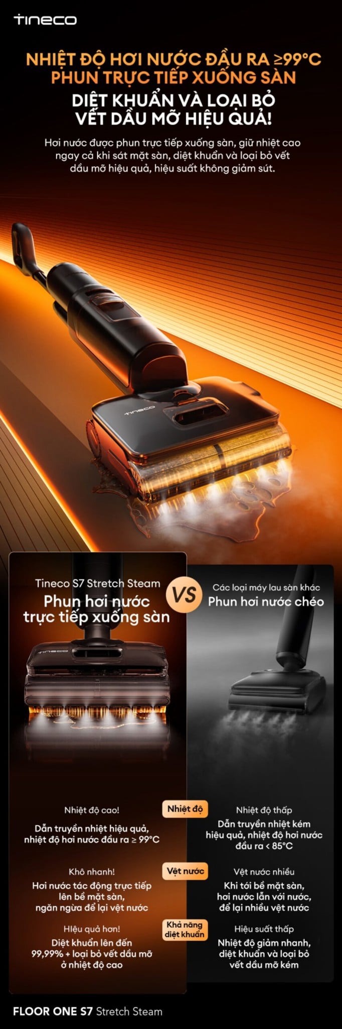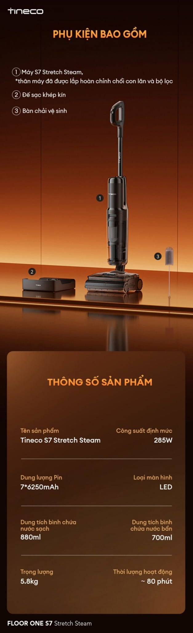 | Tên sản phẩm | Máy hút bụi lau sàn khô ướt Tineco FLOOR ONE S7 Stretch Steam |