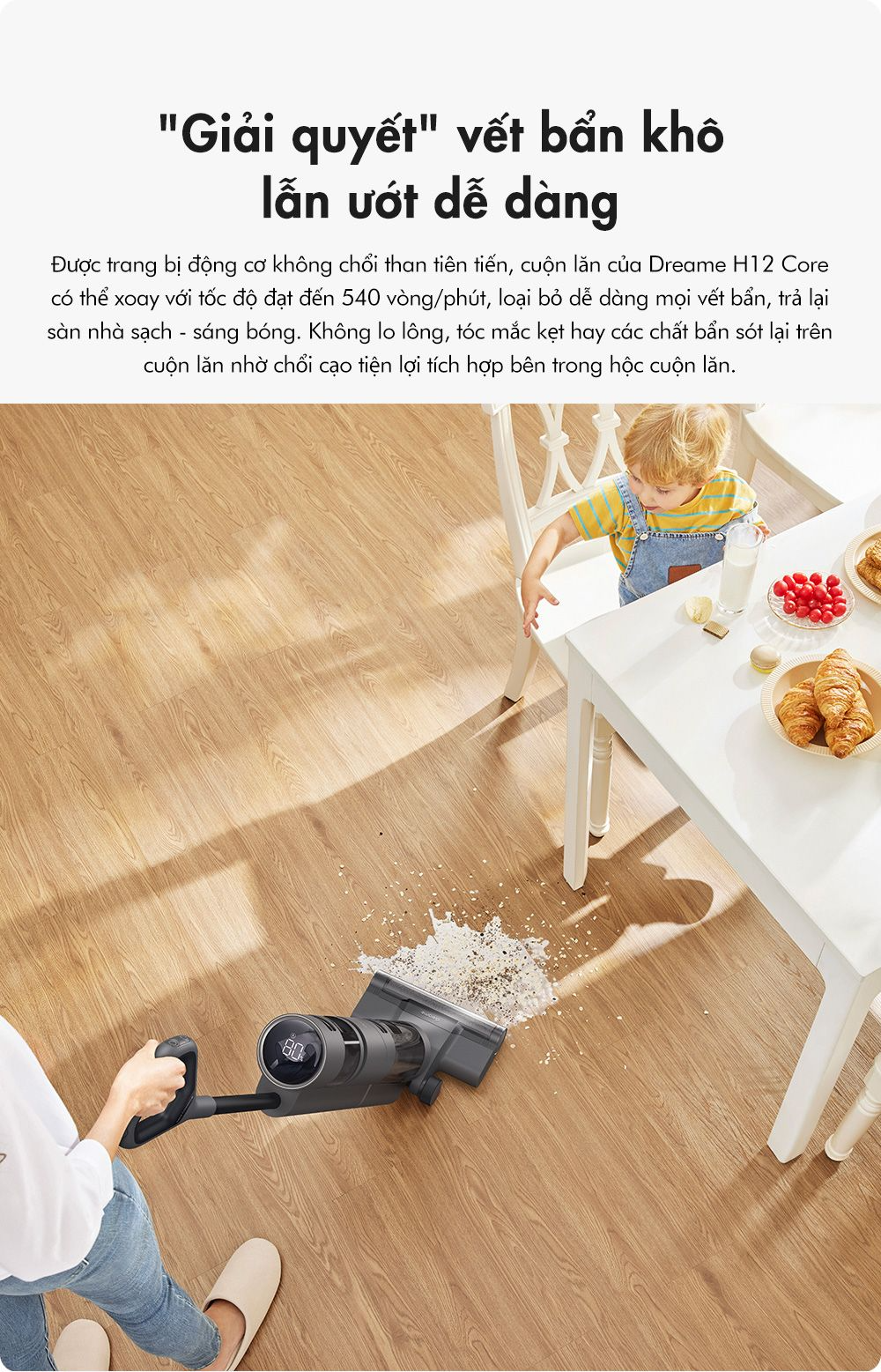 Thừa hưởng những tính năng ưu việt của đàn anh H12 và H12 Pro, máy hút bụi lau sàn Dreame H12 Core có mức giá dễ chịu hơn những vẫn đảm bảo đầy đủ các tính năng phù hợp với mọi gia đình Việt.