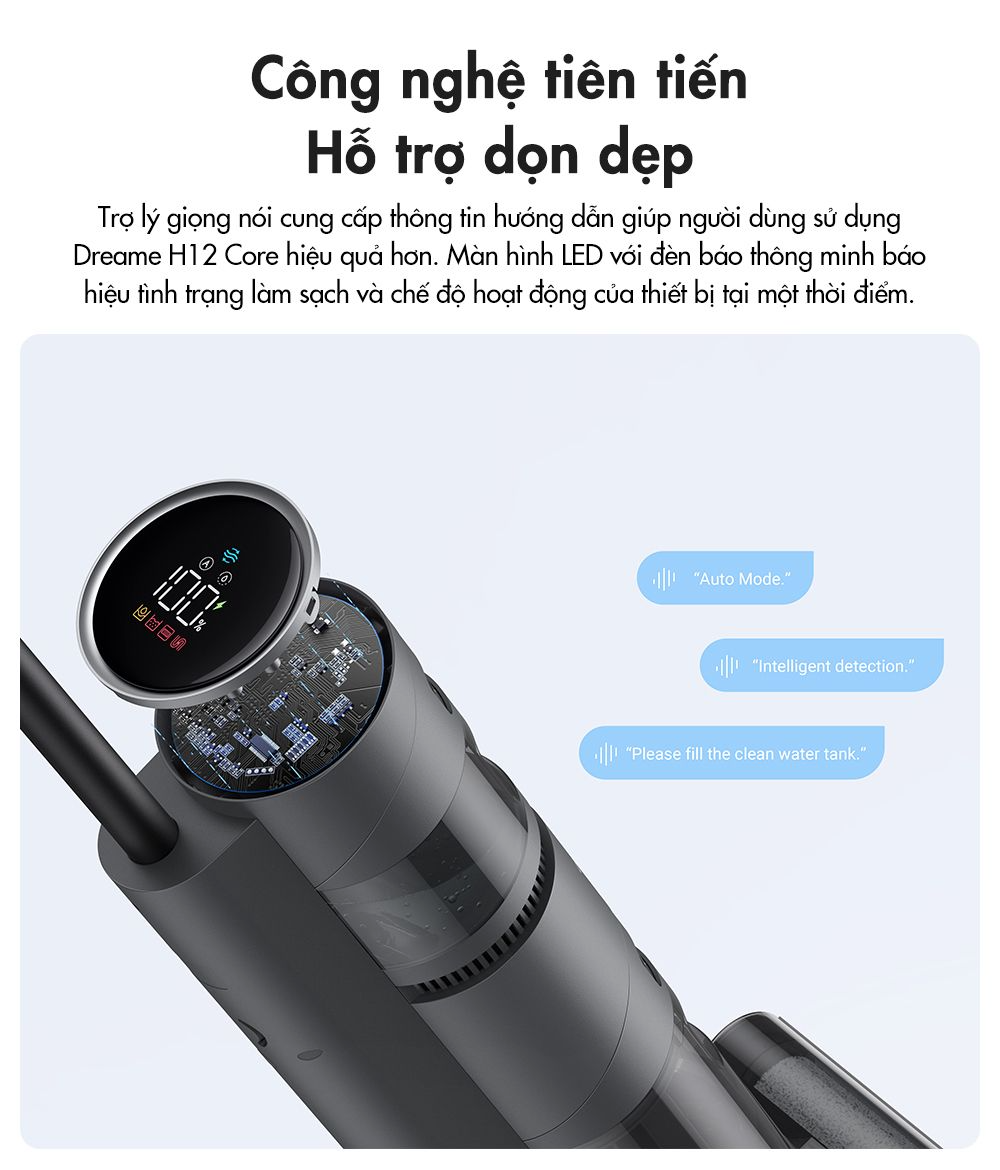 Tất nhiên, vẫn cần nhắc đến những tính năng nổi bật vốn có trên series H12, nay được giữ nguyên trên máy hút bụi lau sàn H12 Core gồm: trạm sạc đa năng vừa sạc pin vừa là nơi lưu trữ thiết bị và các phụ kiện đi kèm, trợ lý giọng nói hỗ trợ sử dụng thiết bị hiệu quả, màn hình với đèn LED báo thông minh, bình nước dung tích lên tới 900ml giúp dọn nhà tiện lợi và nhàn nhã hơn. Và đặc biệt là tính năng tự động vệ sinh cuộn lăn chỉ với một nút nhấn duy nhất.