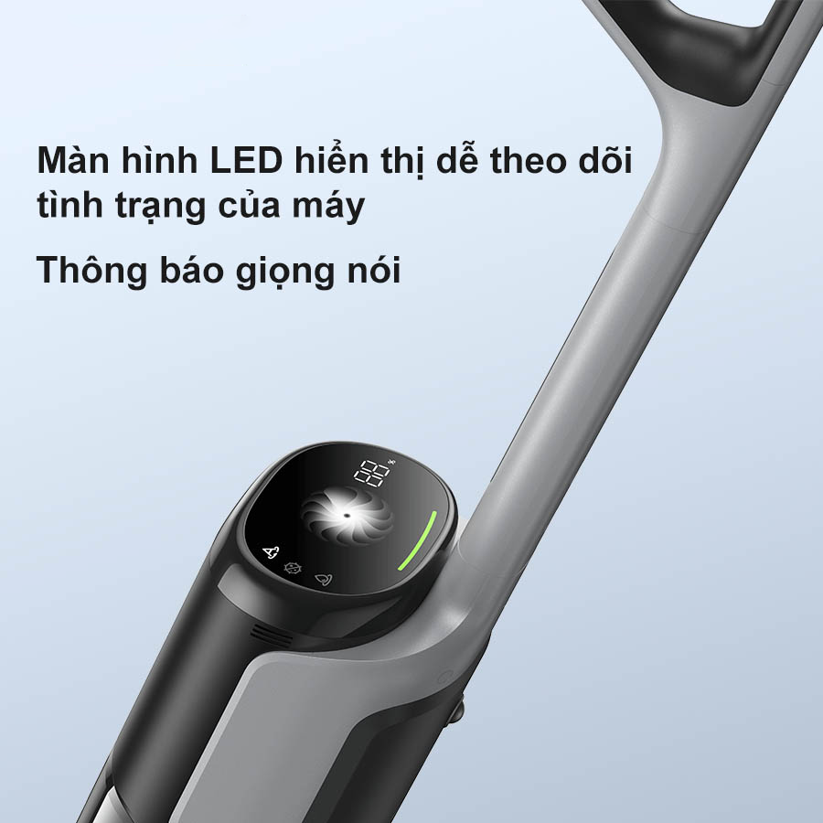Bên cạnh đó, Dreame H14 cũng được trang bị màn hình LED hiển thị trực quan các cài đặt, chế độ, cùng với lời nhắc bằng giọng nói giúp việc làm sạch trở nên dễ dàng hơn bao giờ hết. Dreame H14 giúp bạn đơn giản hoá các thao tác để mang lại sự tiện lợi và thoải mái mỗi lần dọn dẹp.
