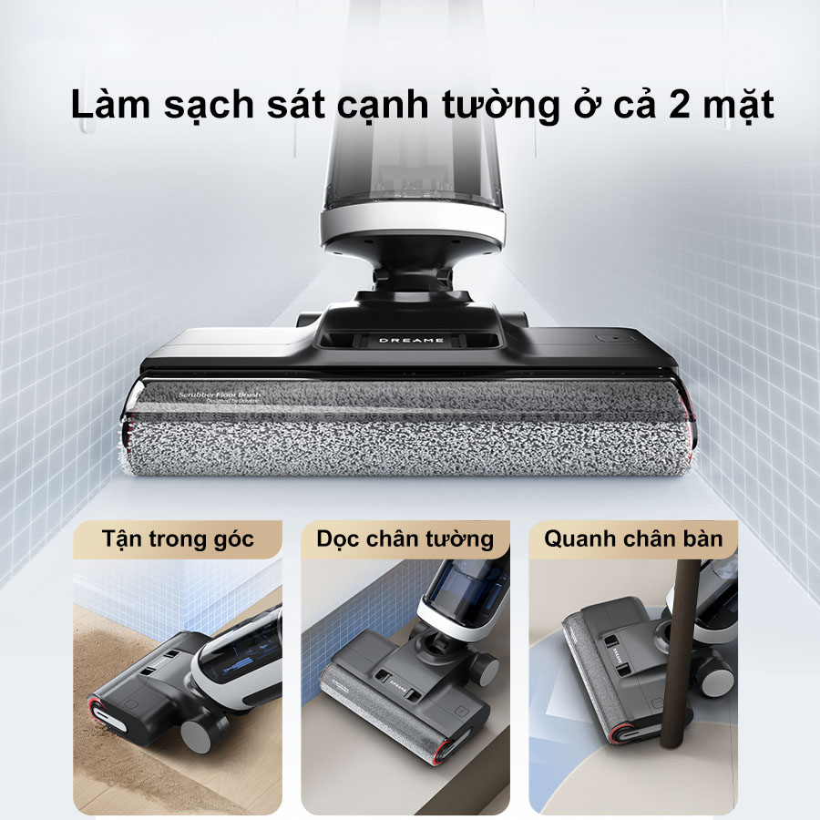 Dreame H14 khẳng định khả năng vượt trội trong việc làm sạch các góc cạnh, góc chân tường nhờ vào con lăn tràn viền cả 2 bên. Thiết kế này cho phép máy hút bụi Dreame H14 có thể thâm nhập sâu vào các khu vực khó tiếp cận, nhanh chóng loại bỏ bụi và vết bẩn một cách hiệu quả.