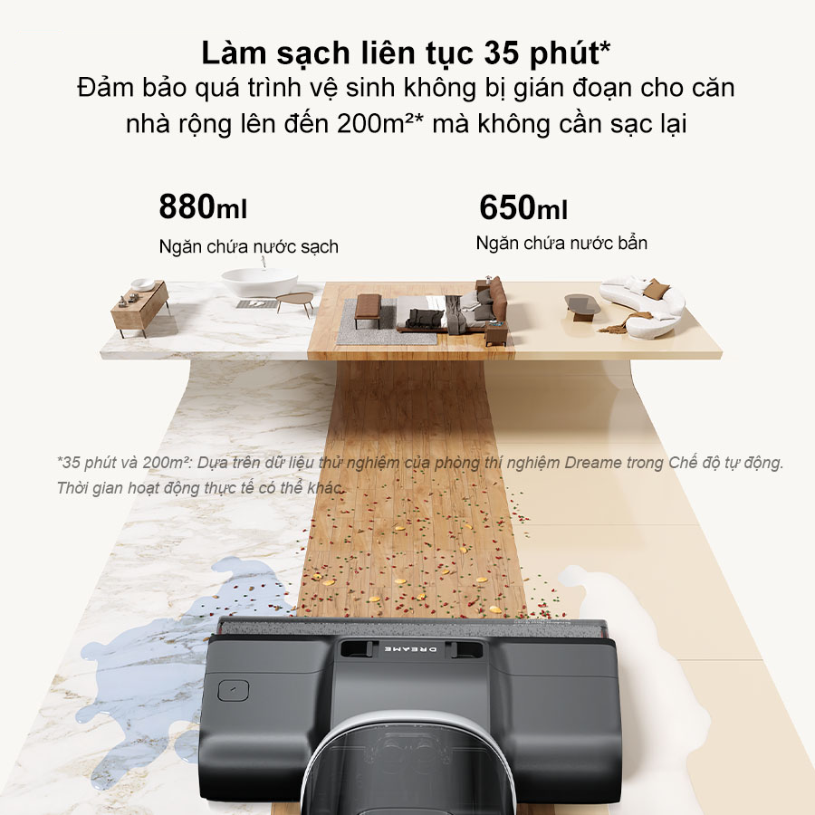 Không cần phải lo lắng về việc dừng lại giữa chừng để sạc pin, máy hút bụi lau nhà Dreame H14 cho phép bạn tiếp tục làm sạch mà không có sự gián đoạn, giúp hoàn thành công việc một cách thuận lợi và hiệu quả nhất.