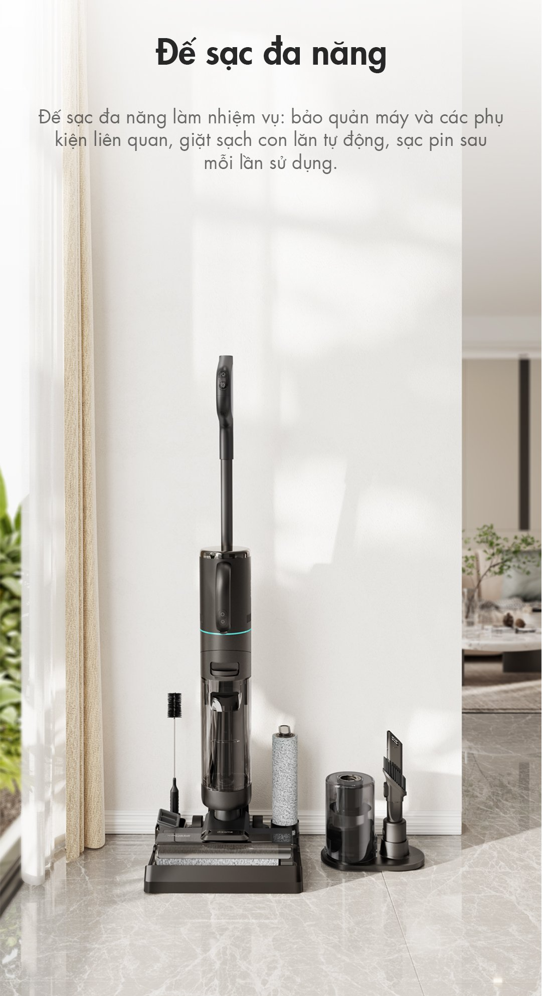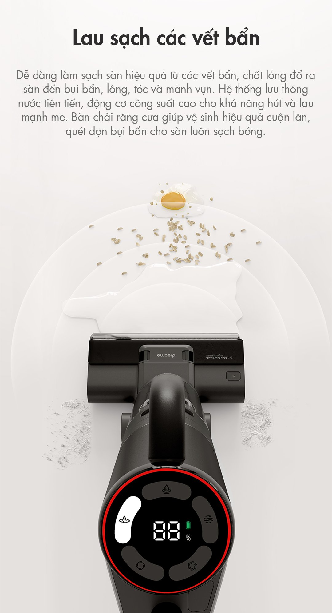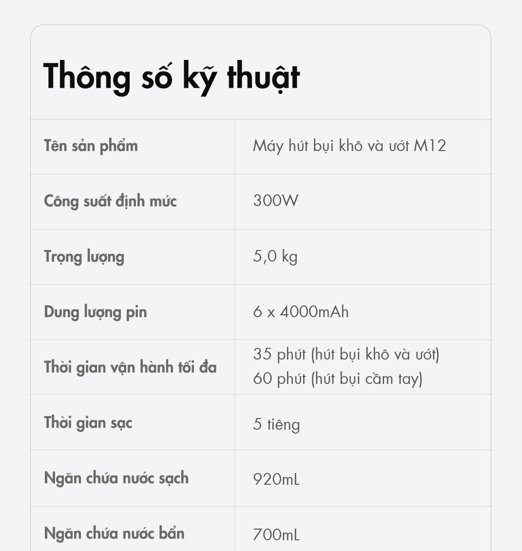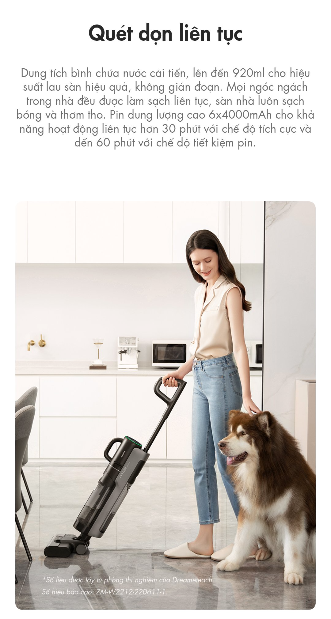Thời gian sử dụng: lên đến 35 phút (chế độ máy lau sàn) và 60 phút (chế độ máy hút bụi cầm tay)