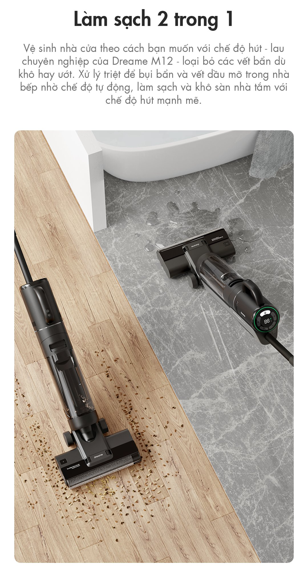 Tên sản phẩm: Máy Lau Sàn Kiêm Hút Bụi Cầm Tay 2 trong 1 Dreame M12