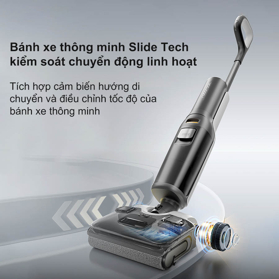 Roborock F25 ACE sử dụng bánh xe thông minh Slide Tech để hỗ trợ thao tác đẩy và kéo, giúp việc vận hành trở nên nhẹ nhàng và đơn giản hơn bao giờ hết. Máy có khả năng cảm biến hướng di chuyển và điều chỉnh tốc độ của các bánh xe thông minh, giúp cho các thao tác đẩy và kéo đều hết sức mượt mà, bất kể bạn di chuyển tới hay lui. Đồng thời, Roborock F25 ACE cũng tính toán lực xoay, giúp các thao tác xoay chuyển trở nên dễ dàng với sự ổn định hoàn hảo.