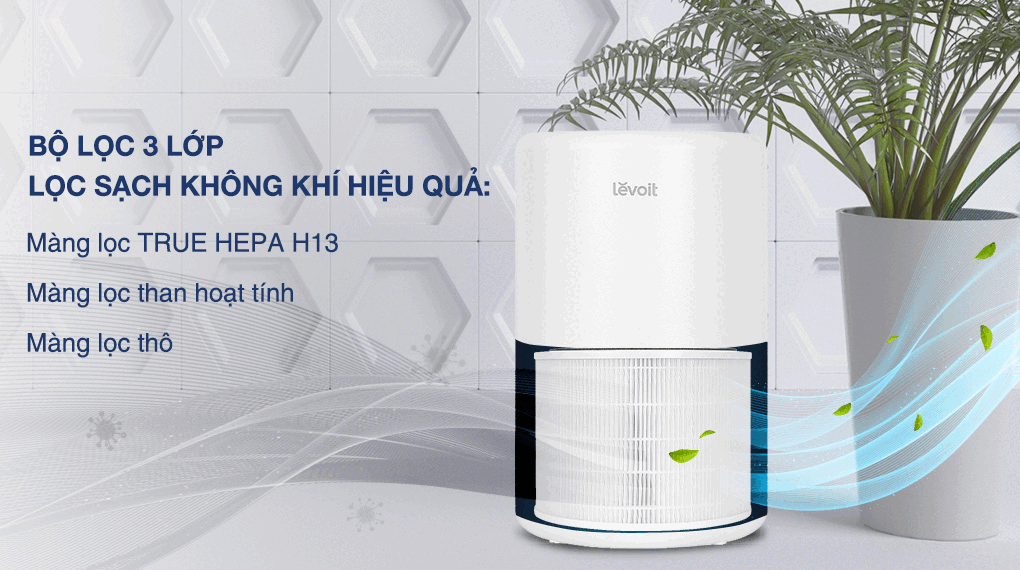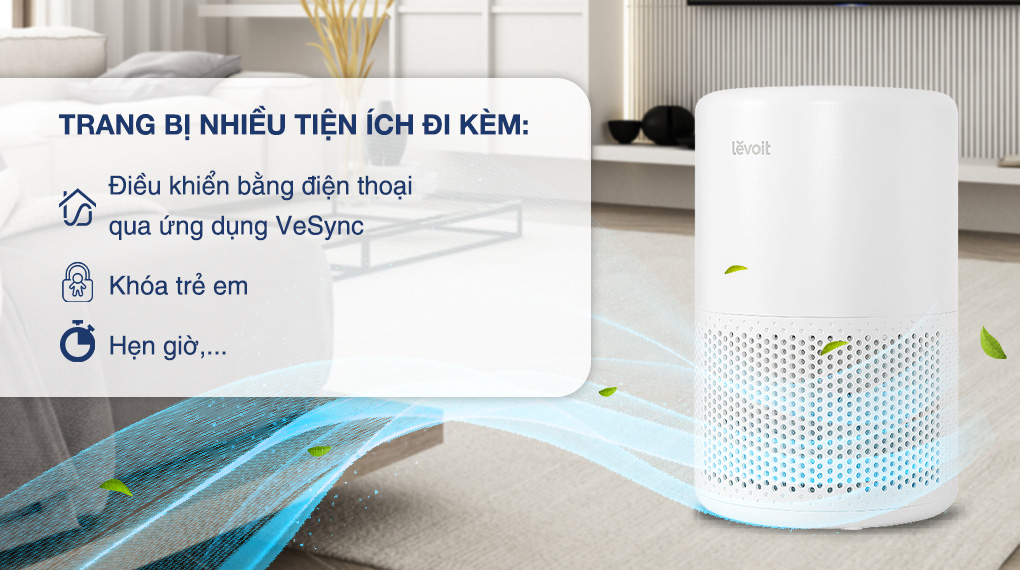 - Máy lọc không khí Levoit sở hữu công nghệ Super quiet (QuietKEAP) và công nghệ Air Turbo (VortexAir) giúp máy lọc không khí hiệu quả, hạn chế tiếng ồn.