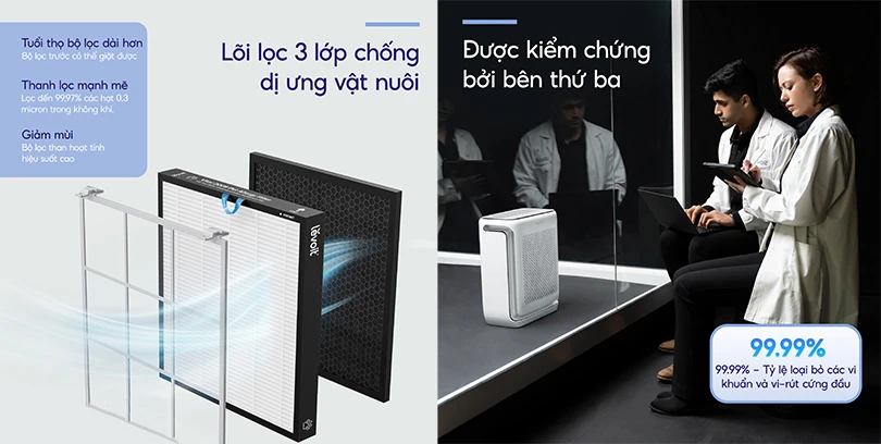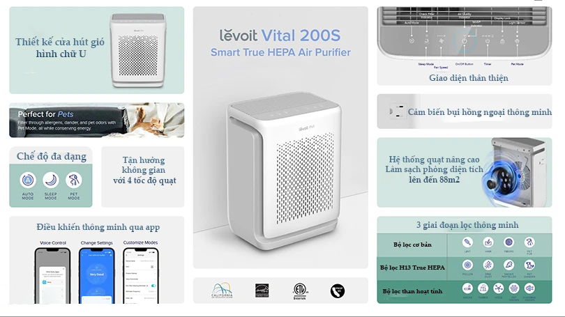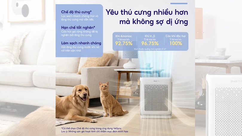 Máy lọc không khí Levoit Vital 200S hứa hẹn là giải pháp hiệu quả cho người yêu thích thú cưng nhưng lại dị ứng vô cùng hiệu quả. Sản phẩm máy lọc không khí Levoit với bộ lọc ba lớp giúp loại bỏ tới 99,97% bụi bẩn trong không khí.