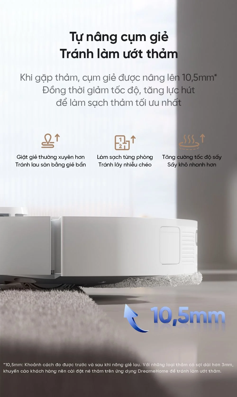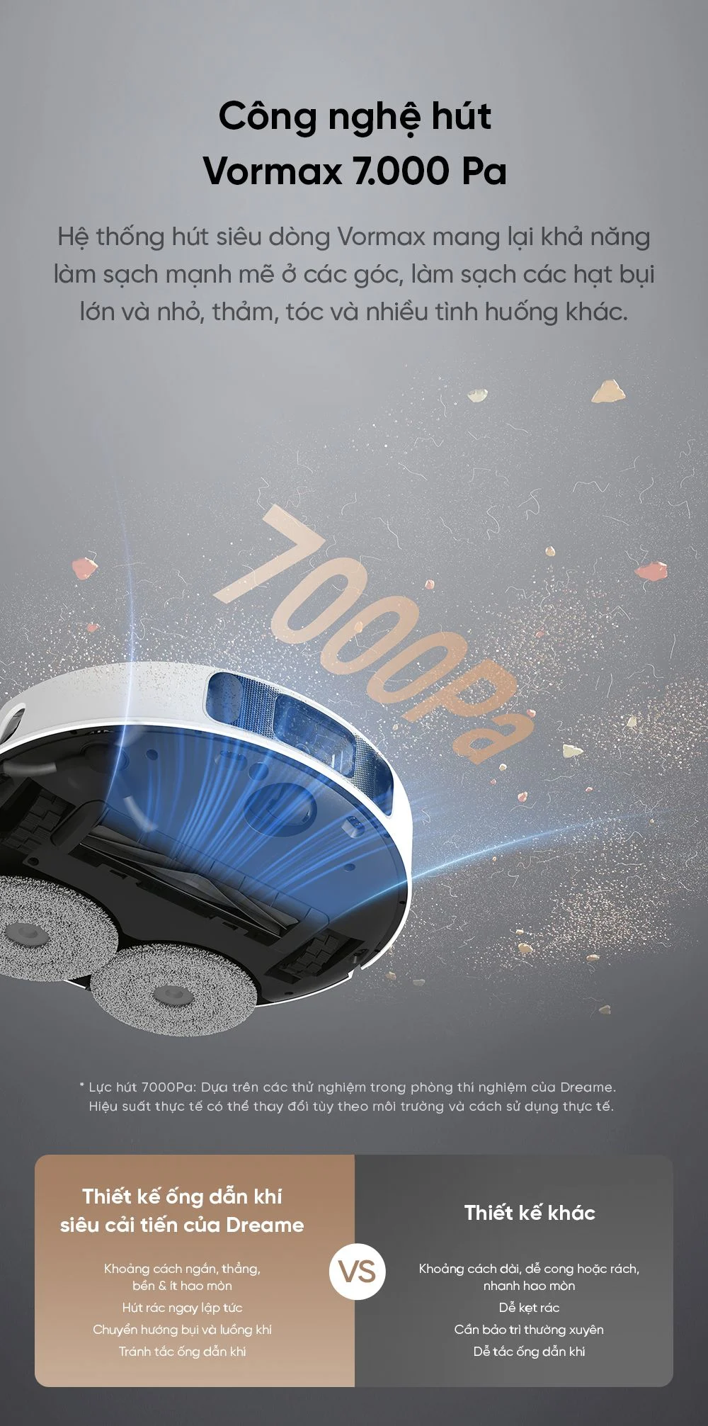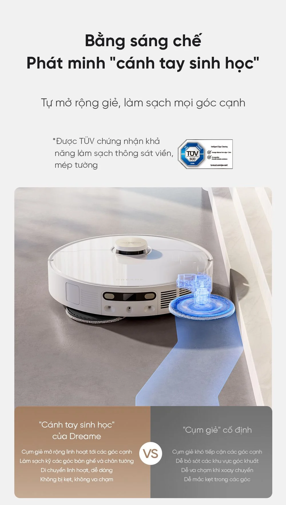 Ngoài ra, sản phẩm bao gồm tính năng tự động mở rộng giẻ lau, giúp làm sạch sát các cạnh tường, chân bàn ghế, không có góc chết. Dreame l10s Ultra Heat được trang bị lực hút 7.000Pa, làm sạch mạnh mẽ nhiều tình huống khác nhau.