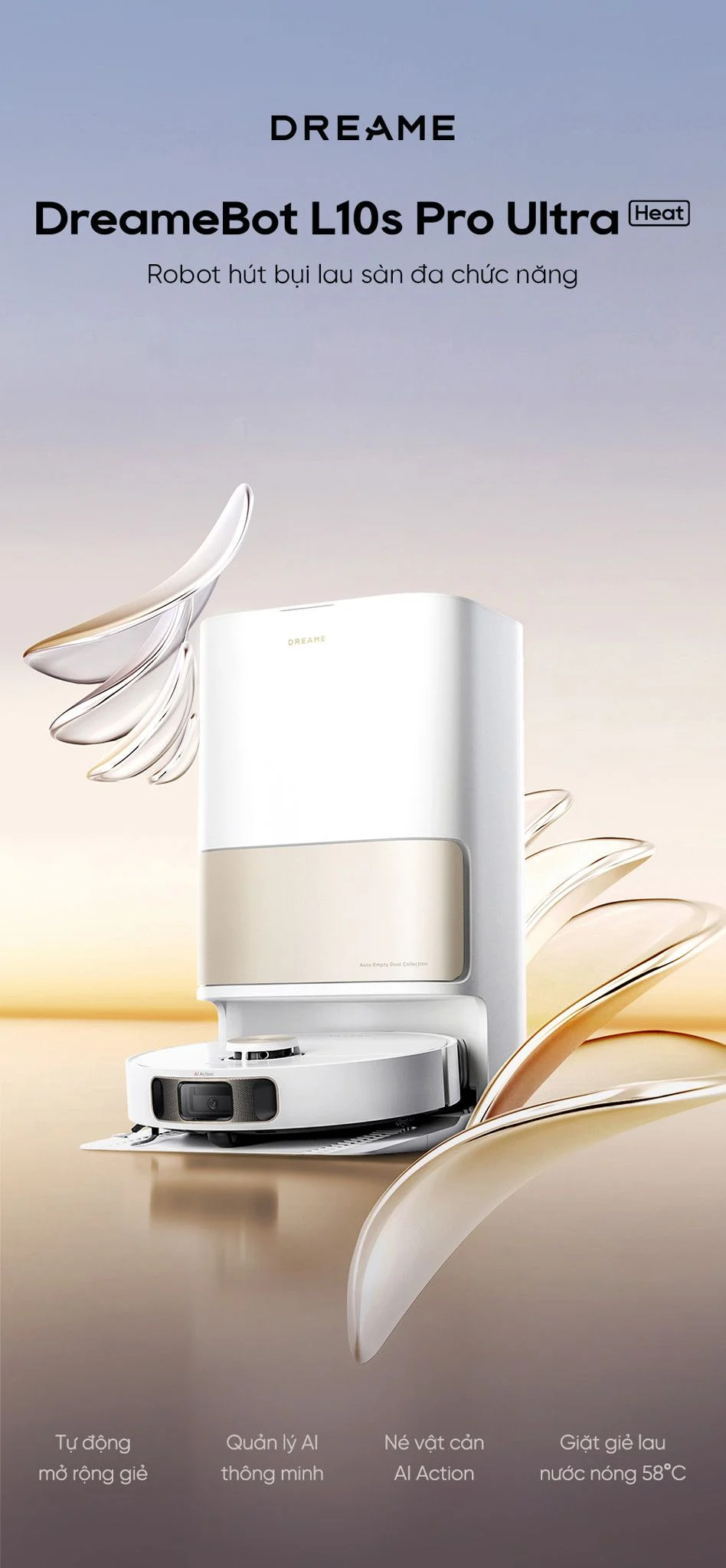 Tiếp nối thành công của mẫu flagship DreameBot L20 Ultra đình đám ra mắt tháng 9 vừa qua, Dreame lại tiếp tục tung ra 1 phiên bản robot lau sàn mới. Dreame L10s Pro Ultra Heat vừa tích hợp những tính năng nội bật từ người anh em L20 Ultra, vừa được trang bị thêm tính năng giặt giẻ bằng nước nóng, hứa hẹn sẽ mang đến cho người dùng những trải nghiệm lau sàn hoàn hảo nhất.