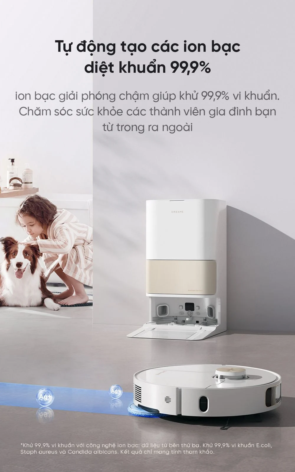Robot hút bụi lau sàn đa tính năng DreameBot L10s Pro Ultra Heat đã được nâng cấp tăng cường tốc độ sấy, trang bị thêm công nghệ ion bạc khử khuẩn, an toàn cho sức khỏe.