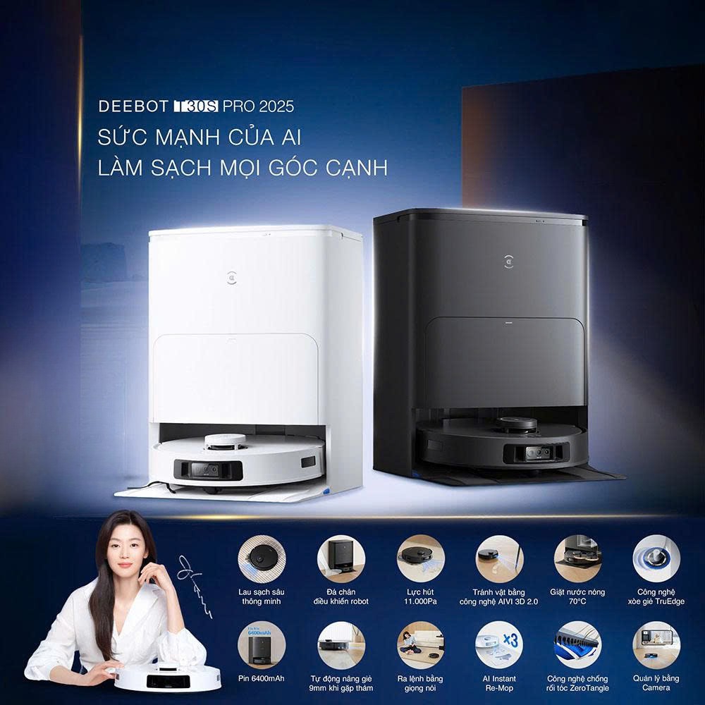 Robot hút bụi lau nhà Ecovacs Deebot T30S Pro 2025 là sự kết hợp hoàn hảo giữa sức mạnh vượt trội và thời lượng pin ấn tượng. Với dung lượng pin 6400mAh và lực hút mạnh mẽ 11.000 Pa, robot này đảm bảo làm sạch hiệu quả mọi bề mặt, hoạt động bền bỉ suốt cả ngày, mang đến cho bạn một không gian sống sạch sẽ mà không cần lo lắng về việc sạc pin thường xuyên.