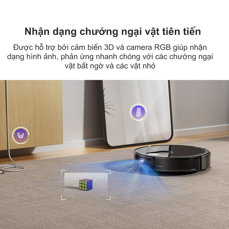 Với tần suất lấy mẫu dữ liệu được cải thiện gấp 21 lần và khả năng nhận diện lên đến 73 loại vật thể, Roborock Q Revo Slim xử lý dữ liệu một cách chi tiết, từ chiều sâu đến chiều cao, giúp định vị và lập bản đồ chính xác. Công nghệ cảm biến 3D không chỉ hỗ trợ robot trong việc di chuyển mà còn giúp nó dễ dàng né tránh các chướng ngại vật nhỏ, nhờ vào camera RGB kết hợp cùng hệ thống cảm biến.