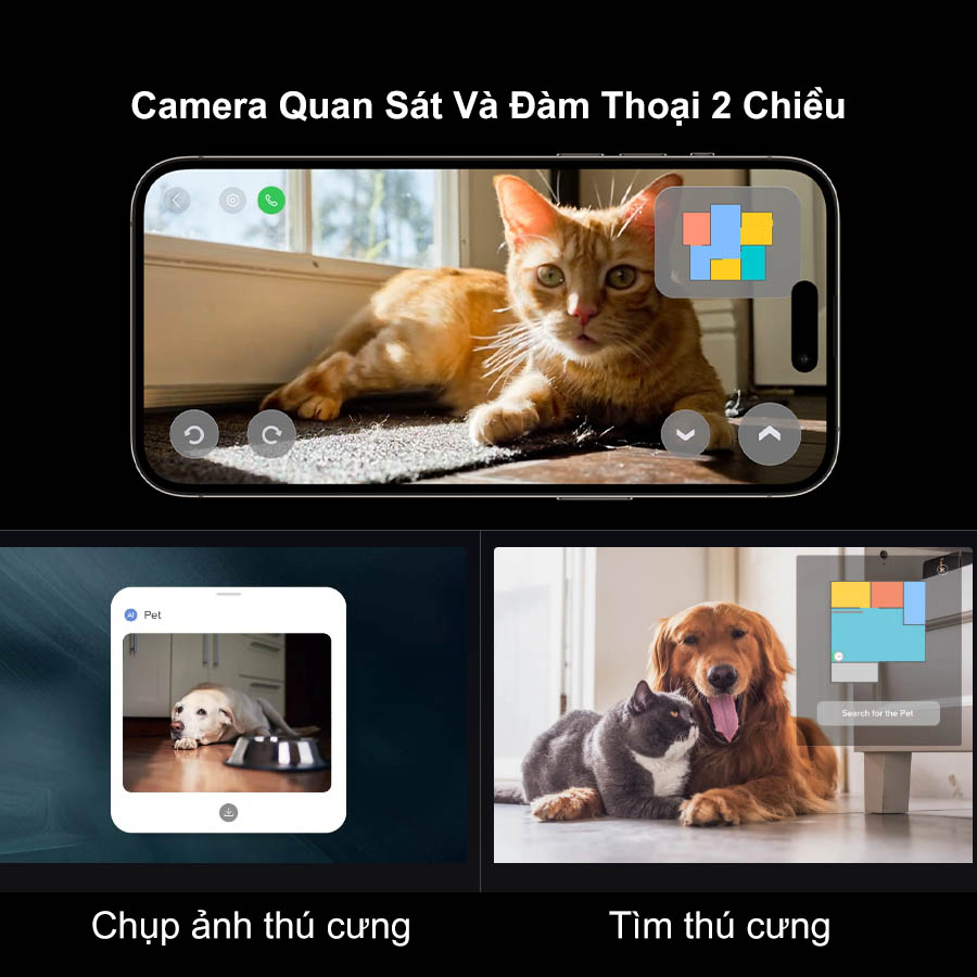 Nếu bạn lo lắng về thú cưng khi chúng ở nhà một mình, chỉ cần một thao tác trong ứng dụng, robot sẽ tự động đi quanh nhà và tìm kiếm thú cưng, giúp bạn yên tâm hơn khi không ở nhà.