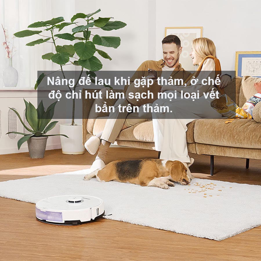 - Nhận diện thảm thông minh: Tự động nâng đế lau khi gặp thảm, giúp làm sạch hiệu quả trên bề mặt thảm.