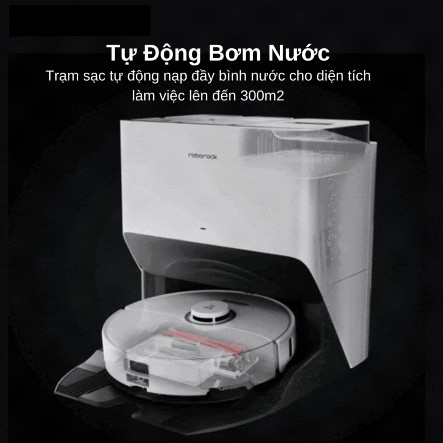 Roborock S8 Pro Ultra còn dễ dàng tự động bơm đầy bình nước nhỏ 200ml trong robot, điều này giúp robot có thể hoạt động trong một thời gian lâu hơn, diện tích làm việc lớn hơn.